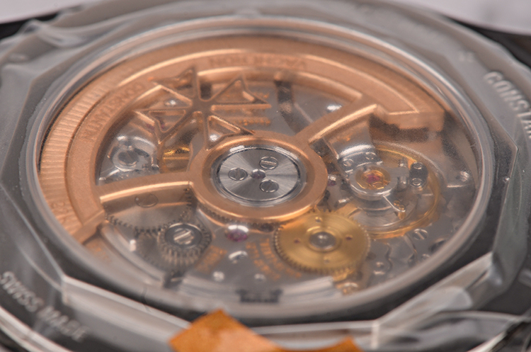 VC自产CAL.2460QCL/1型新款机芯,自动机械,极其精致日内瓦条纹打磨,倒角抛光修饰,日内瓦印记,由308个零件组成,27钻,摆频28800,5方位校正,22K黄金镌刻自动转陀,动力储存约40小时。