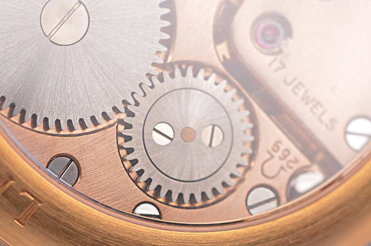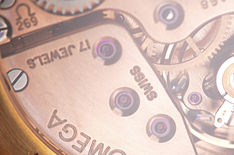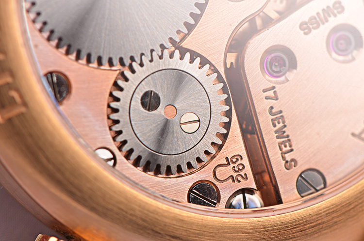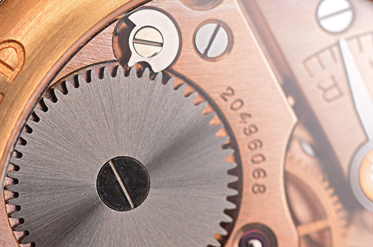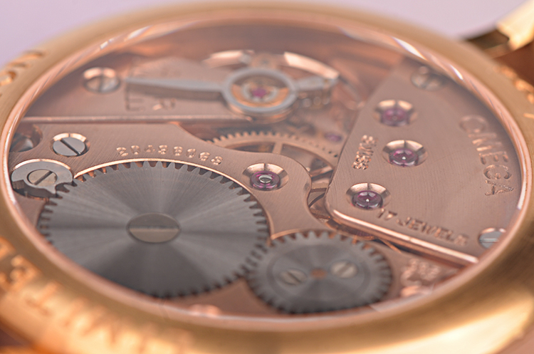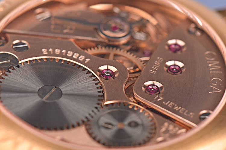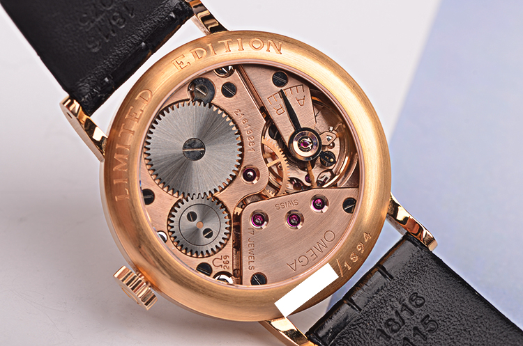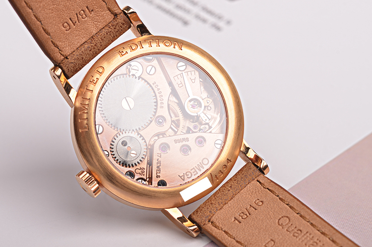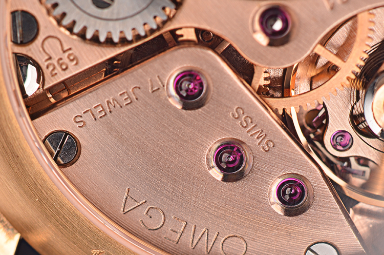 欧米茄CAL.269型机芯,30T系列第八次改版,避震器为欧米茄标志形状,手上链,极其精致日内瓦条纹打磨,倒角抛光修饰。获瑞士官方天文台认证,17钻,摆频18000,走时状态极嘉。