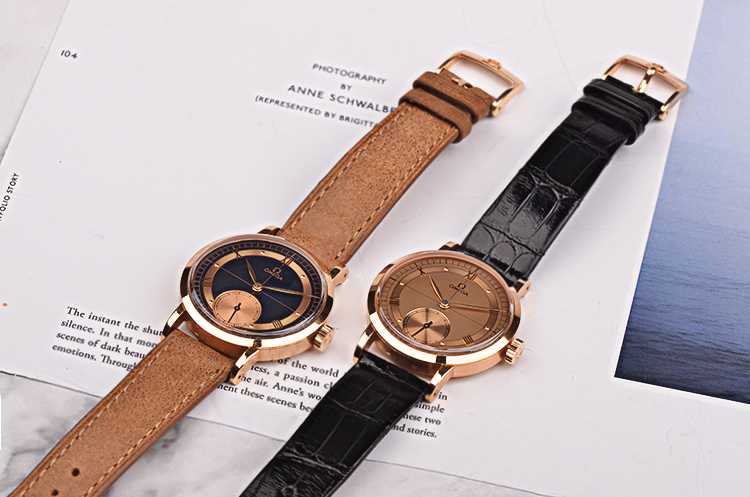 18K黄金表壳及表扣,女皇头印记。金色面盘搭配全新后配黑色鳄鱼皮表带,蓝色面盘搭配全新后配棕色小牛皮表带。圆拱形蓝宝石水晶镜面及底盖,玫瑰金柳叶针,罗马数字刻度,6点位蓝钢小秒针。口径35MM*10.1MM,防水30M。