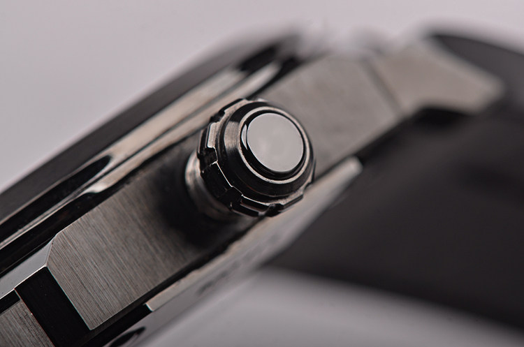 精钢D.L.C.(类钻碳)涂层表壳及表扣,原厂黑色橡胶表带成色极新。蓝宝石水晶镜面及底盖,立体黑色表盘,大三针设计,3点位日历显示功能。口径41MM*9.5MM,旋入式防水表冠,防水50M。