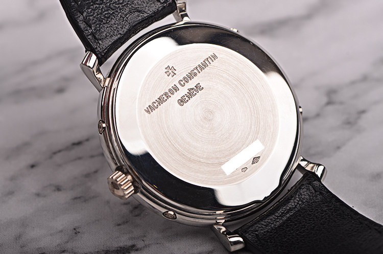 江诗丹顿自产Cal.1126型机芯,自动机械,极其精致日内瓦条纹打磨,33钻,摆频21600,21K黄金自动转陀,动力储备约38小时,走时状态极嘉。