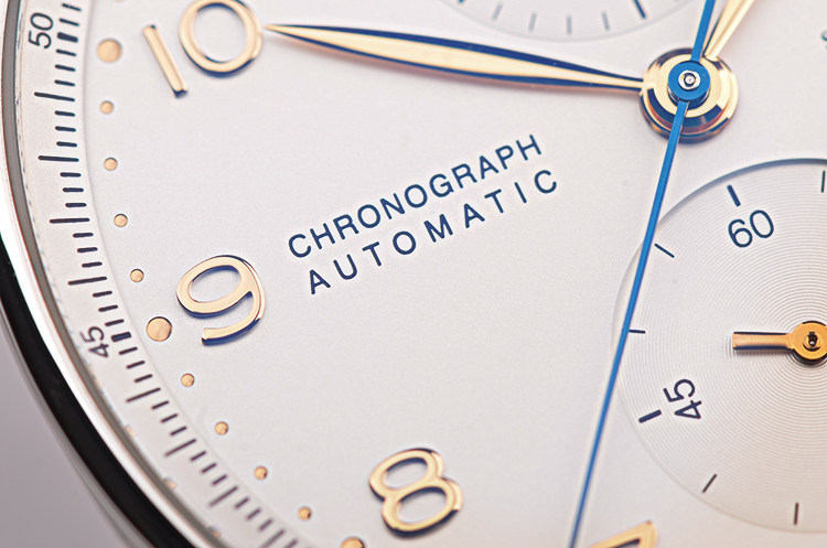 葡萄牙系列白面金针计时自动机械折叠扣皮带男表
