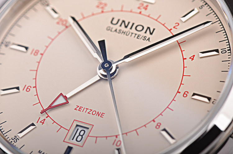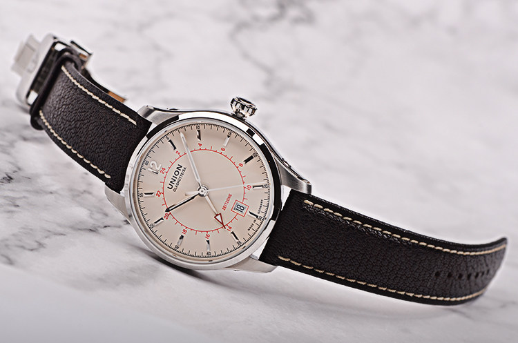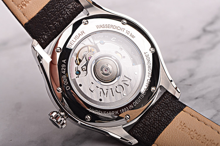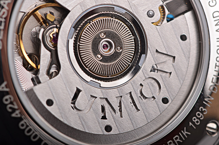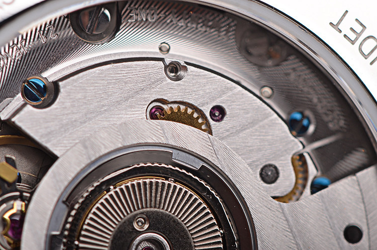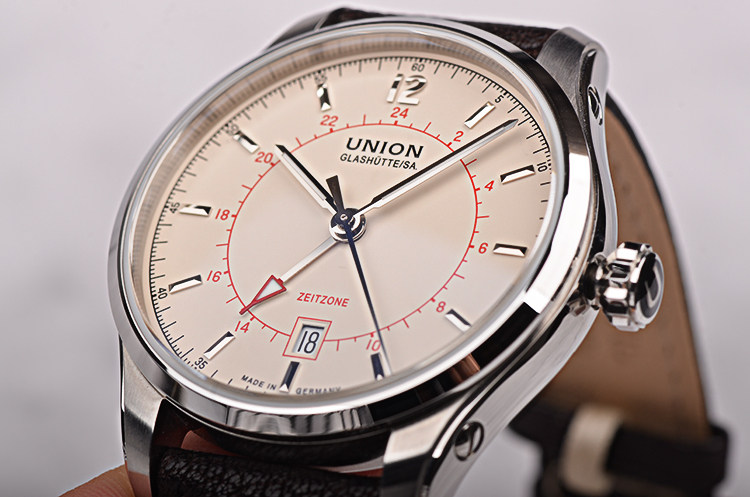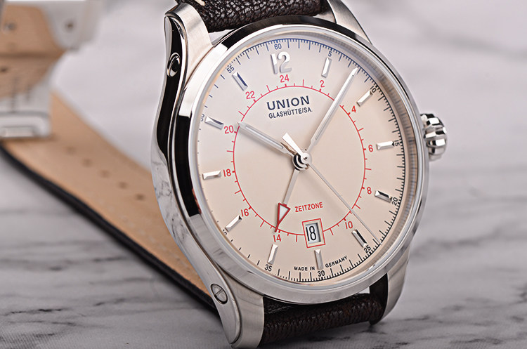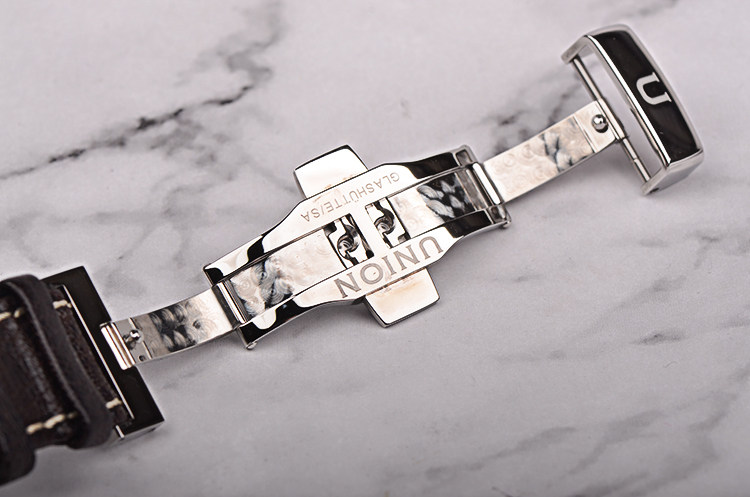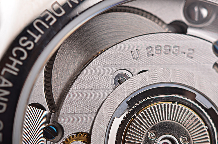 宇联CAL.U 2893-2 GMT型机芯,自动机械,精致格拉苏蒂柱状条纹打磨,品牌LOGO镂空自动转陀,21钻,摆频28800,动力储存约42小时,走时状态极嘉。