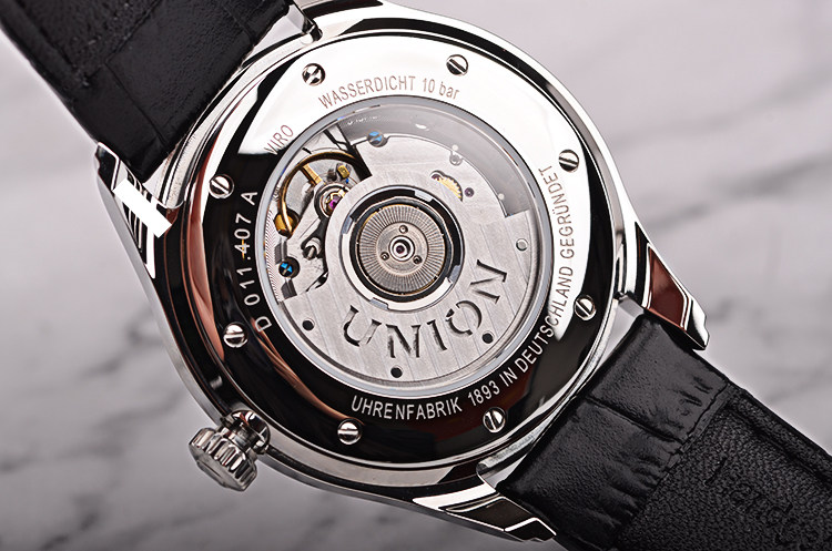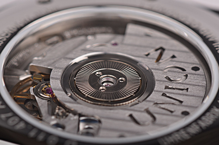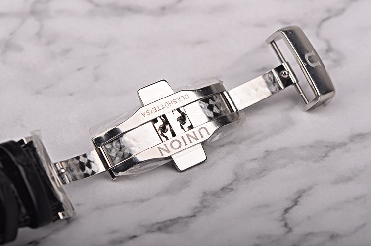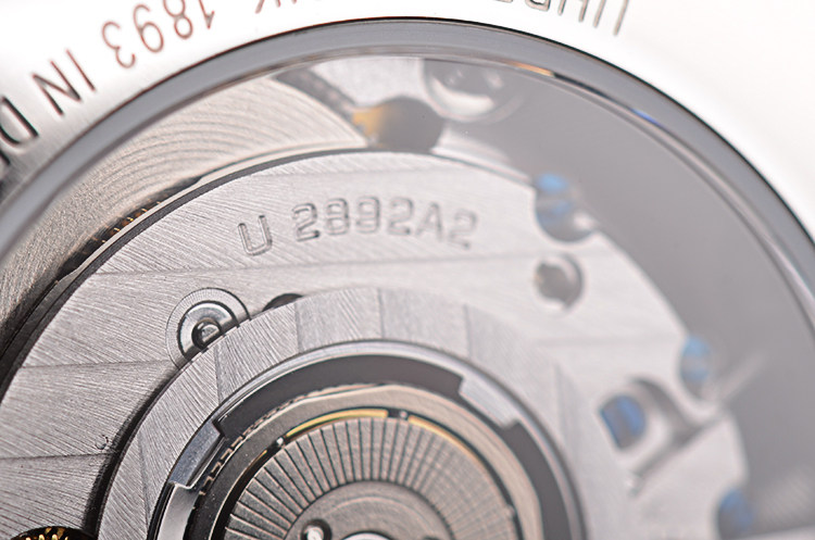 宇联CAL.U 2892A2型机芯,自动机械,精致格拉苏蒂柱状条纹打磨,品牌LOGO镂空自动转陀,21钻,摆频28800,动力储存约42小时,走时状态极嘉。