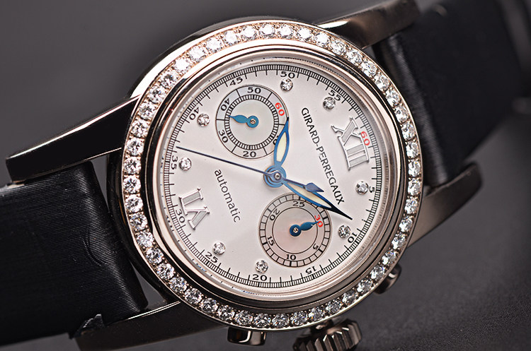 白金镶钻计时自动机械皮带女表