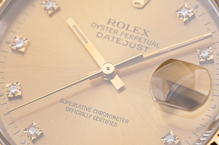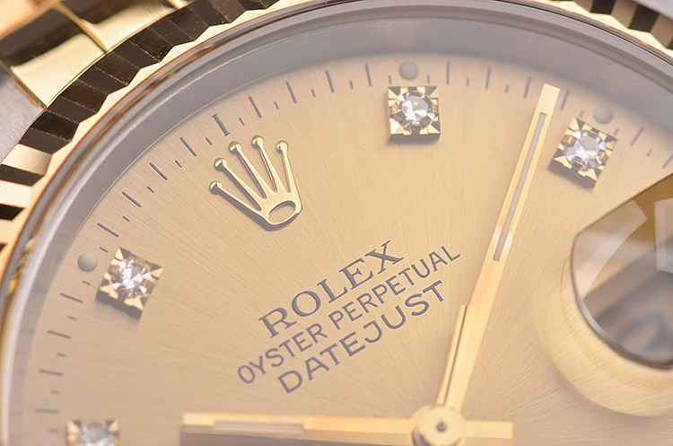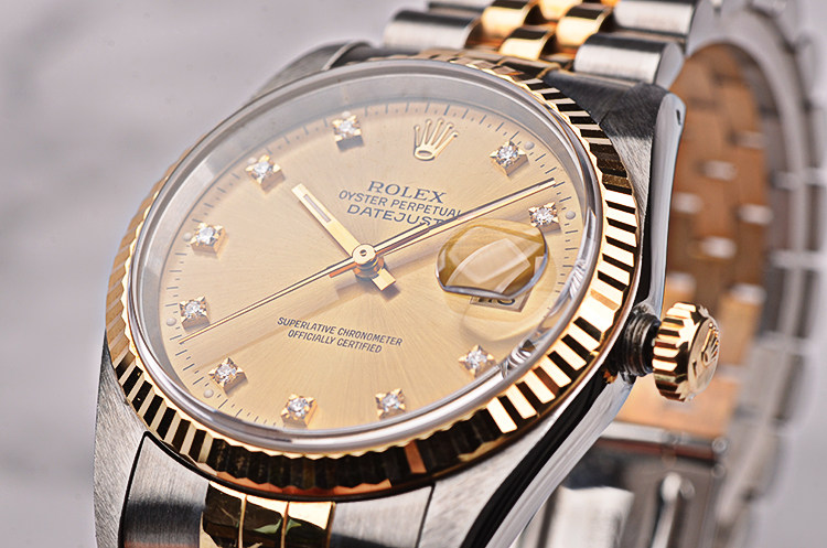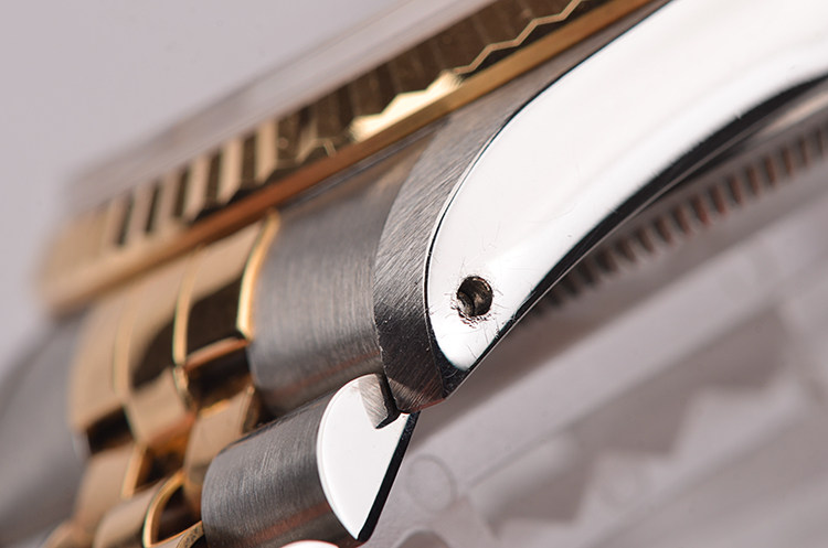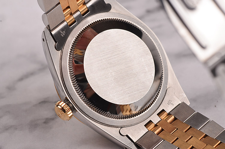 18K黄金及钢表壳及链带,18K三角坑纹黄金表圈,18K黄金及钢五铢链带,折叠式表扣。蓝宝石水晶镜面,黄金指针,立体金色面盘,原厂天然大包钻刻度,3点位放大镜日历。18K黄金旋入式防水锁把。口径36MM*10MM。防水100M。