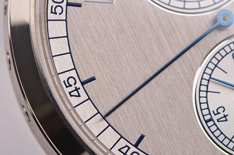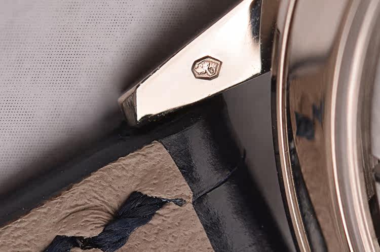 18K白金表壳及表扣,圣伯纳狗头印记。后配黑色鳄鱼皮表带成色极新。蓝宝石水晶镜面及底盖,立体双色调银色表盘,经垂直缎纹磨砂处理,烧蓝钢指针,规范指针,中心长分针,年历显示功能。口径40.5MM*10MM,防水30M。