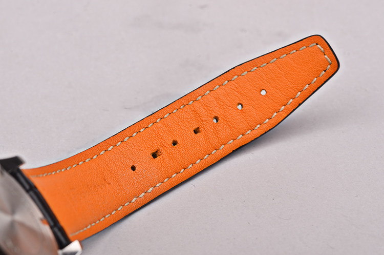 精钢表壳及表扣,后配黑色鳄鱼皮表带成色极新。抗反光镀层蓝宝石水晶镜面,立体黑色表盘,夜光刻度及指针,3点位日历显示功能。口径39MM*11.5MM,旋入式防水表冠,防水60M。