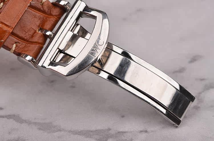 精钢表壳及折叠式表扣,后配棕色鳄鱼纹牛皮表带成色很新。蓝宝石水晶镜面,立体银色拉丝面盘,3点位日历显示功能。口径39MM*8.6MM,防水30M。