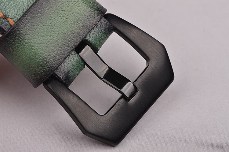 精钢表壳,后配黑色pvd涂层精钢表扣,后配军绿色牛皮表带成色极新。抗反光镀层蓝宝石水晶镜面,立体黑色表盘,夜光刻度及时分针,3点位日历显示功能。口径40MM*11MM,旋入式防水表冠,防水60M。