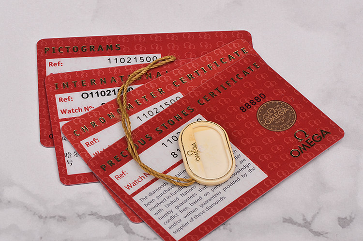 附件有吊牌,钻石证书,机芯证书,天文台证书,保修卡(2017年10月),国行货品。