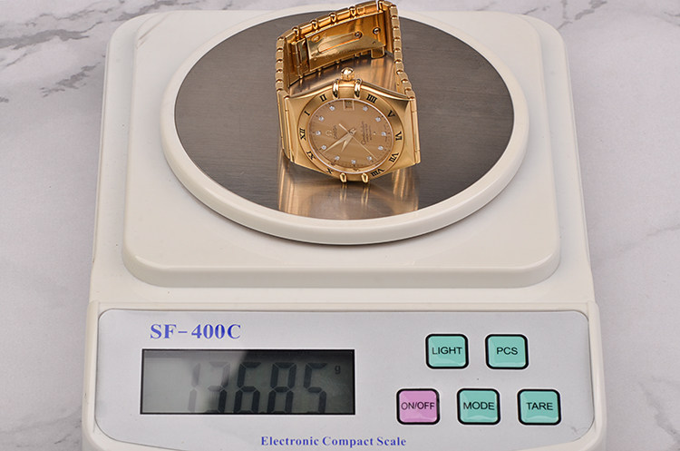 整表97成色新,正常轻微生活使用痕迹,未见明显划痕,无磕碰。指针,面盘均腕美无瑕。腕周约190MM,注意手寸合适才购买。整表重约136克,单金子也不少钱了。