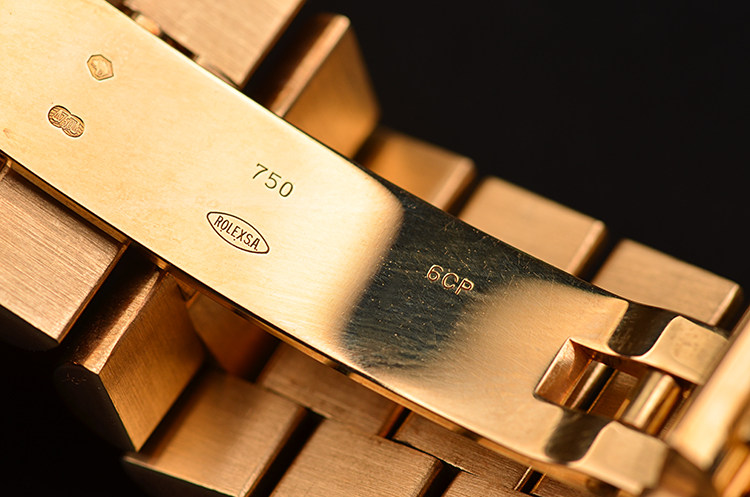 整表原始品相98成色新,正常轻微生活使用痕迹,无明显划痕,无磕碰。指针,面盘均腕美无瑕。22节表链,腕周约190MM,注意手寸合适再购买。乱码字头表,整表重约175克,3两半金子戴手上。保证没有开过底盖,没有任何打磨翻新修饰。