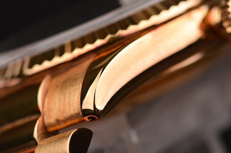 劳力士引以为傲的旗舰级3155自动机械机芯,代表着精准,稳定,可靠。星期,日历功能。50小时动力储备,31钻,摆频28800。日历显示,瑞士天文台及劳力士双重认证,螺母摆轮调节系统,KIF防振器。走时状态极嘉。