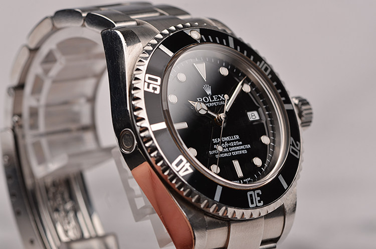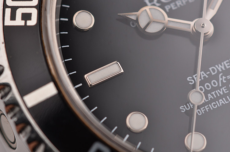 904L精钢表壳及链带,折叠式表扣。黑色单向旋转计时表圈。蓝宝石水晶镜面,立体黑色表盘,夜光奔驰刻度及指针。3点位日历显示功能。表壳侧面9点位排氦气阀装置。专业潜水用表。旋入式防水表冠。口径40MM*14.6MM,防水深达1220M。