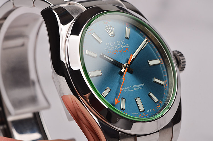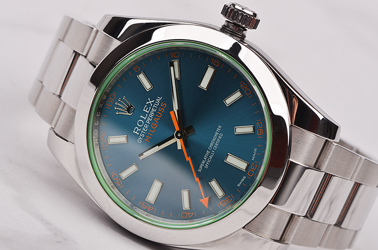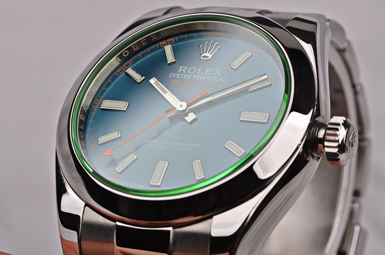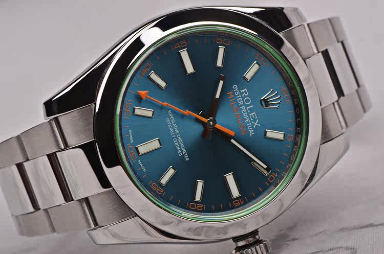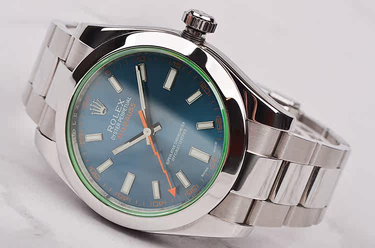 904L精钢表壳及链带,折叠式表扣。绿色蓝宝石水晶镜面,立体蓝色表盘,瑞士天文台认证标识,夜光刻度及时分针,橙色闪电秒针。旋入式防水表把。口径40MM*12.5MM。防水100M。