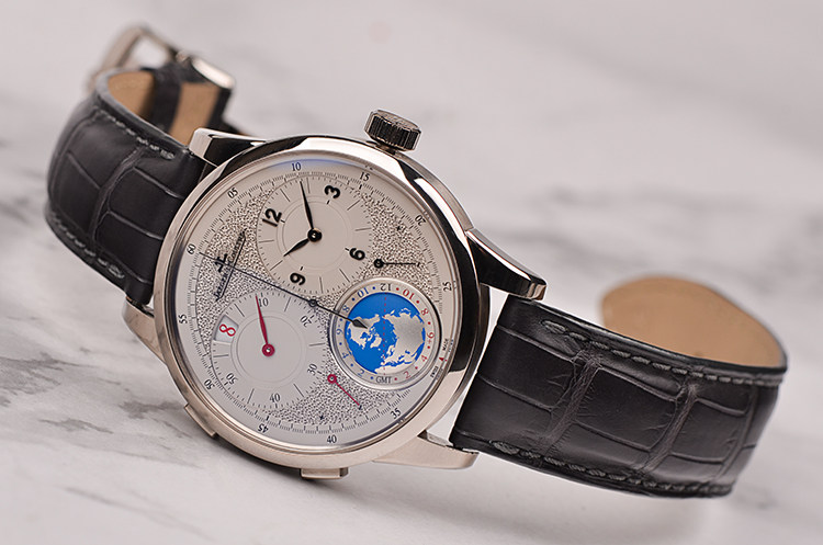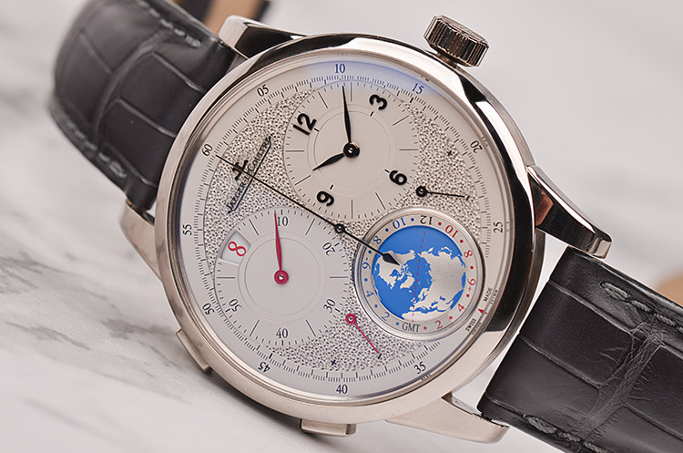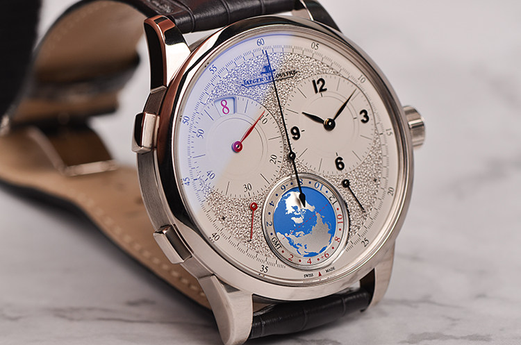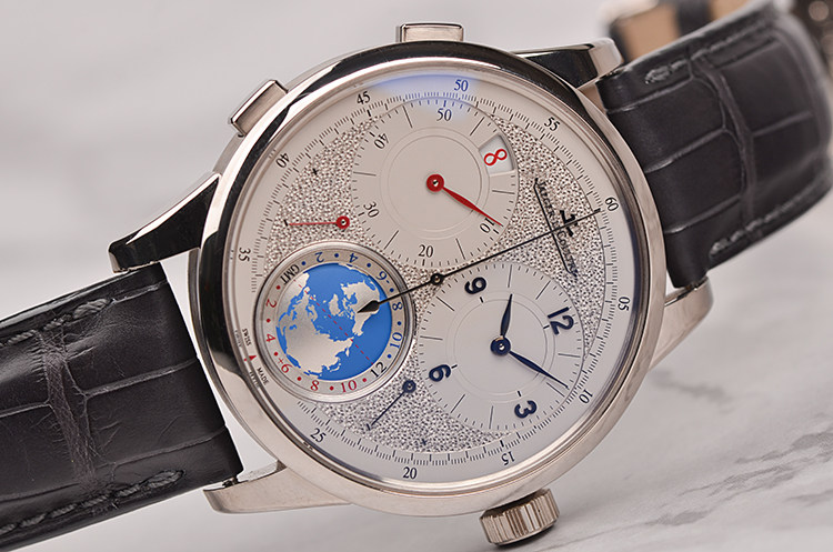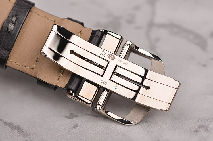 18K白金表壳及双向折叠表扣,原厂黑色鳄鱼皮表带成色极新。蓝宝石水晶镜面及底盖,精緻粒紋裝飾錶盤的觸感讓人愛不釋手、歎為觀止。錶盤完全由錶廠的珍稀工藝(Métiers Rares)大師手工雕琢,以精湛工藝為材質增添令人讚歎的效果。双时区及寰宇时间显示功能。為了讓兩地時間的閱讀上能有更多區隔,10點鐘位置的第二地時間採用跳時視窗來顯示小時,並配合6 點位置的地球來顯示時區,結合晝夜顯示環和時區顯示盤,將世界地圖完美呈現。表盘侧下方附有指针式能量显示功能。