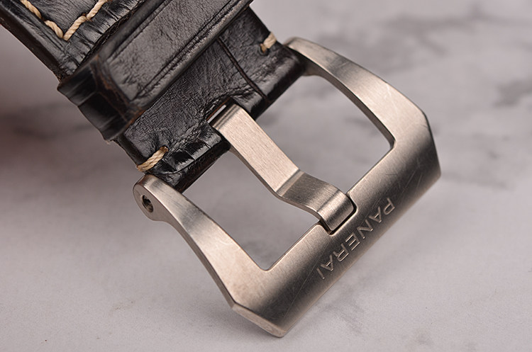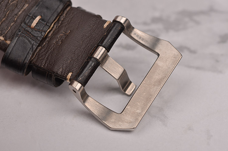 钛黑金表壳及表扣,原装黑色鳄鱼皮表带成色很新。蓝宝石水晶镜面及底盖。立体深棕色三明治表盘,玫瑰金夜光指针及刻度,3点位日历窗口,9点位独立小秒针。旋入式防水表冠。口径45MM*15.7MM。防水100M。