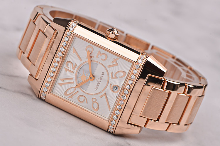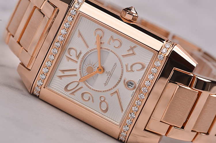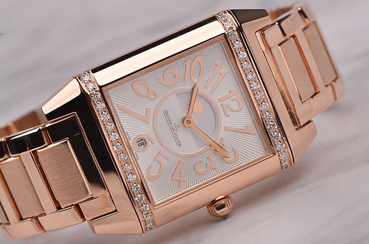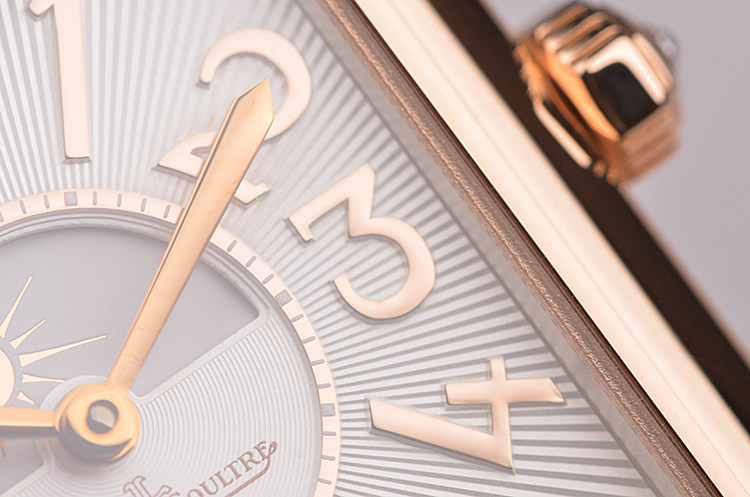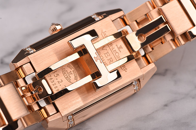 积家自产的Cal.968型机芯,自动机械,精美的日内瓦条纹打磨,由237个零件组成,28钻,摆频28800,动力储备约42小时,走时状态极嘉。