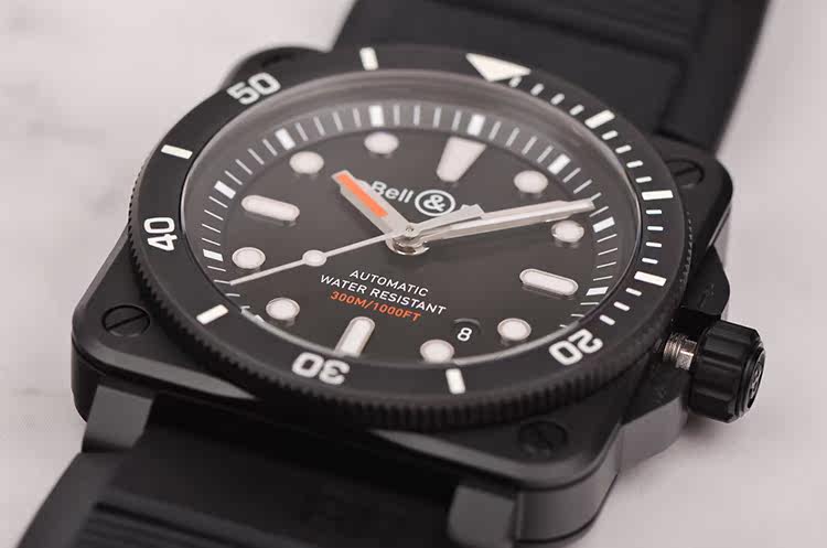 高科技黑陶瓷表壳,黑色PVD精钢表扣。原厂全新黑色橡胶表带,另有一条全新原装黑色魔术贴尼龙表带及表扣(共计2条原装表带,2个原装表扣)。蓝宝石水晶镜面,黑陶瓷单向可旋转夜光计时表圈,立体黑色表盘,夜光刻度及指针,4至5点位间日历视窗。口径42MM*9.8MM,旋入式防水表冠,防水300M,专业潜水表。