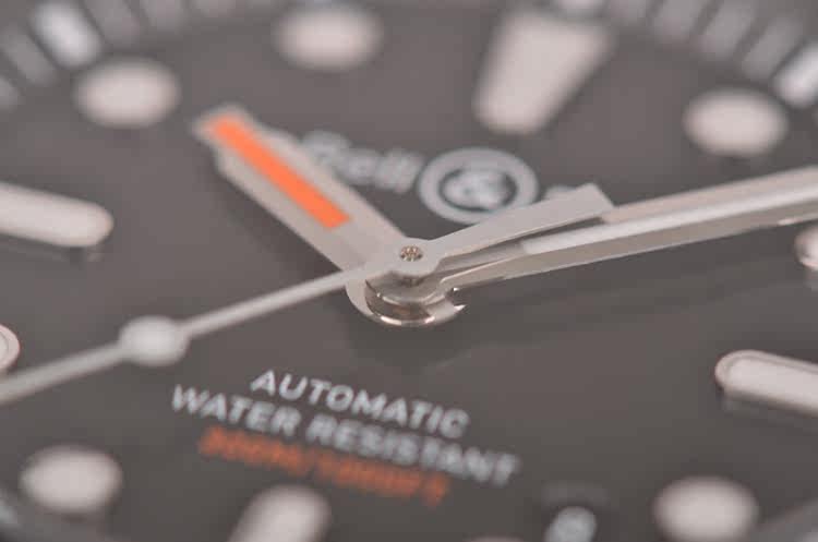 Bell & Ross自产BR-CAL.302型机芯,自动机械,极其精致日内瓦条纹打磨,21钻,摆频28800,动力储存约40小时,走时状态极嘉。