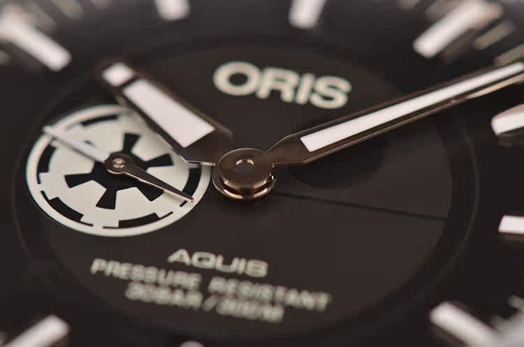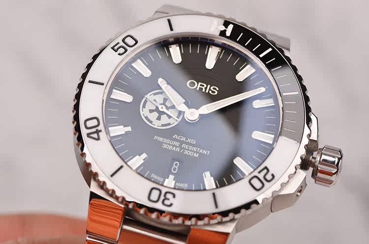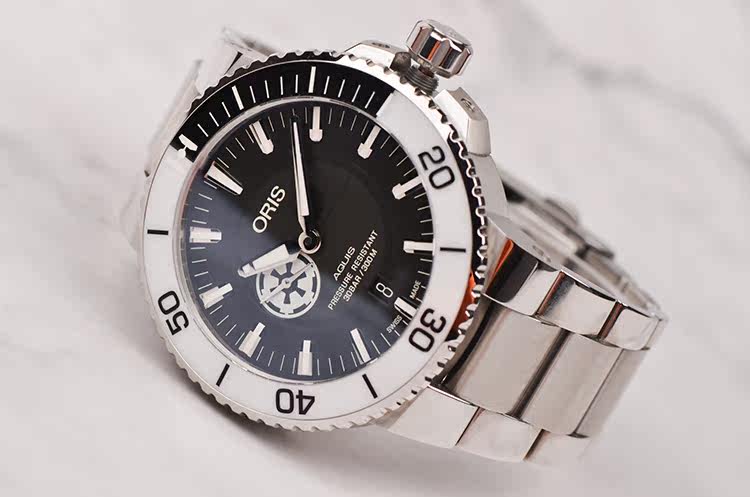 精钢表壳及链带,按压式可微调专利折叠潜水表扣。蓝宝石水晶镜面,黑白双色陶瓷单向可旋转计时表圈,立体黑色表盘,小三针设计,夜光刻度及指针,6点位日历窗口,9点位饰有“银河帝国徽章”底纹独立小秒针,1至2点位饰有死星图案,时标内圈饰有反抗军X翼战机与帝国TIE式战机追逐图案,底盖同样蕴藏星战经典元素设计,刻有帝国冲锋队头盔、限量编号与欧比旺描述帝国冲锋队的经典台词“Only Imperial Stormtroopers are so precise”。旋入式防水表冠,口径43.5MM*12.6MM,防水达300M。