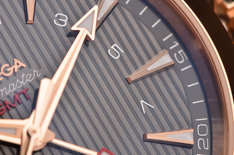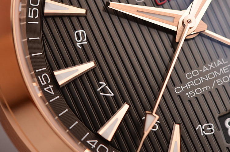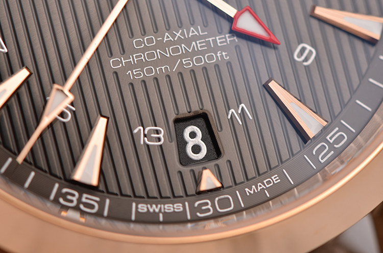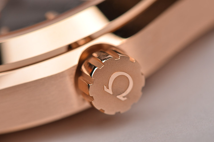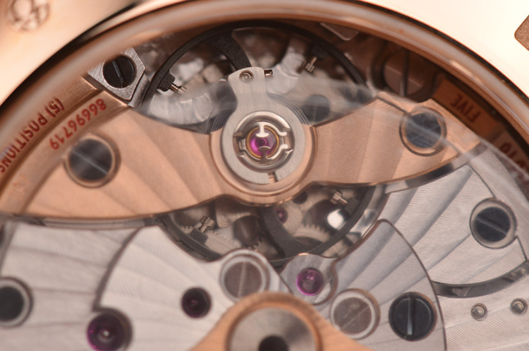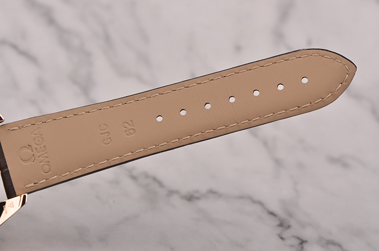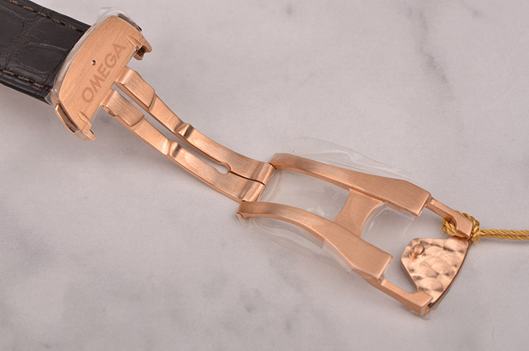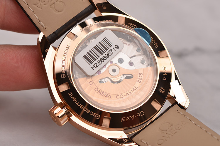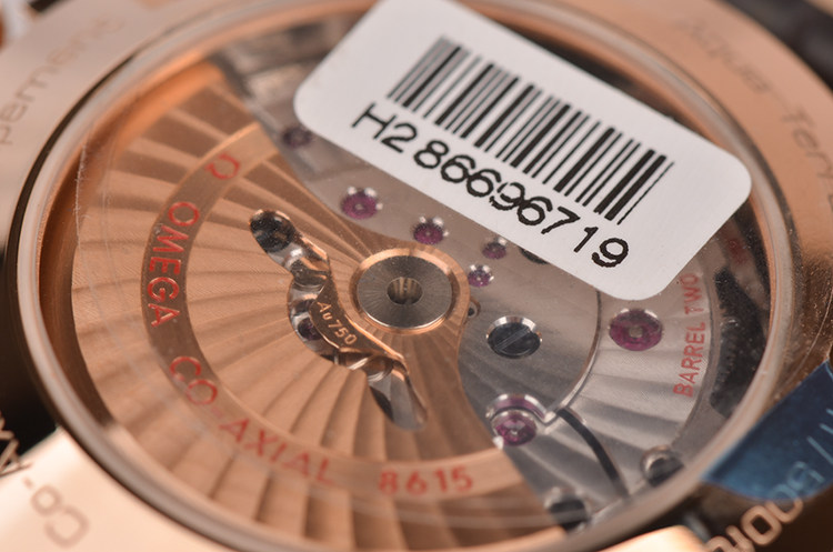 欧米茄自产Cal.8615型机芯,同轴自动上链机芯,搭载带有硅游丝的无卡度游丝摆轮和接续排列的双发条盒,双向自动上链系统。玫瑰金摆轮夹板及自动铊,机芯表面经奢华处理,饰有独特阿拉伯风格的日内瓦波纹。Si14硅游丝,38钻,5方位校正,摆频25200,动力储备约60小时。走时状态极嘉。