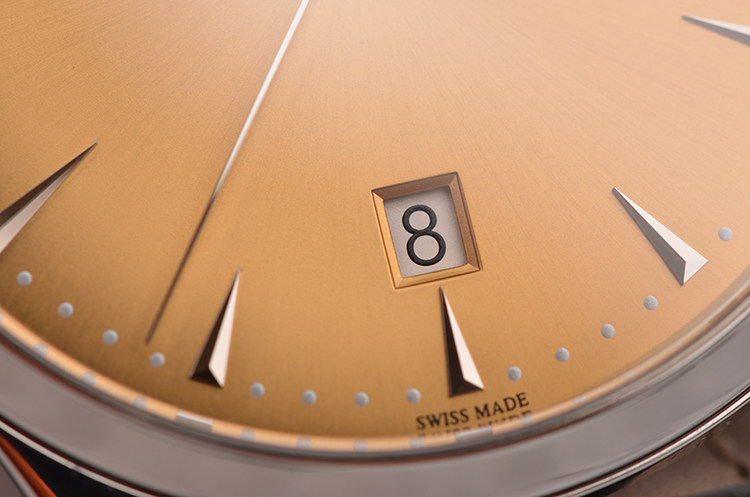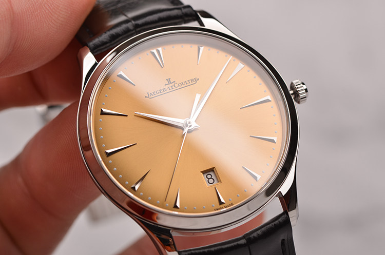大师系列新款超薄香槟色面盘大三针日历自动机械皮带男表