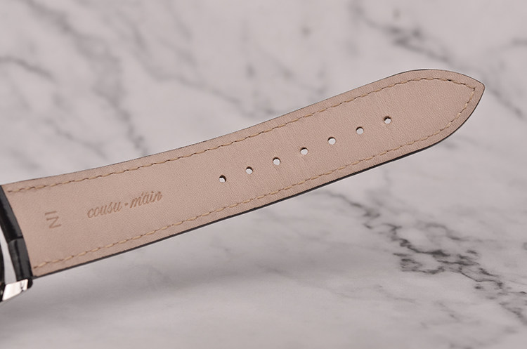 精钢表壳及新款双向折叠式表扣,原厂黑色鳄鱼皮表带几乎全新。蓝宝石水晶镜面及底盖,稀有立体香槟金色表盘,太妃指针,6点位日历视窗。口径40MM*7.4MM,超薄腕表。防水50M。