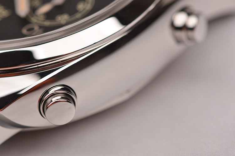 精钢表壳及表扣,原厂深棕色橡胶表带成色极新。由刚玉制成的蓝宝石水晶镜面,立体黑色表盘,三明治夜光刻度及指针,3点位12小时计时,9点位独立小秒针,表盘外沿为帆船比赛专门设计的以“节”为单位的计时刻度,根据计时分针的的指示,可以得出特定距离内(1海里)帆船的平均航速。底盖镌刻古典帆船扬帆出航的浮雕图案。口径44MM*18.5MM,表冠护桥装置,防水100M。