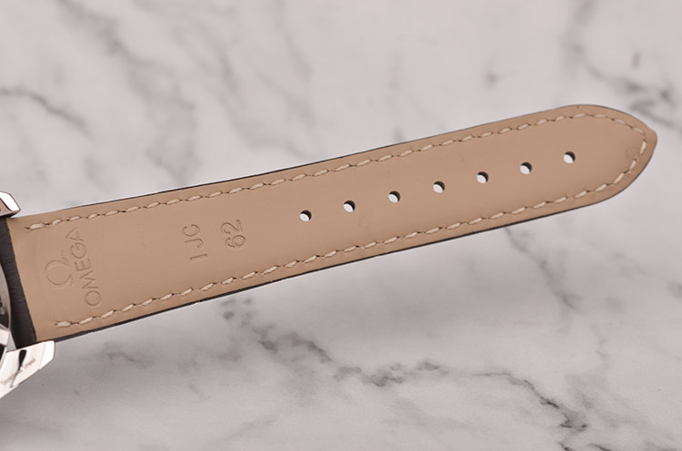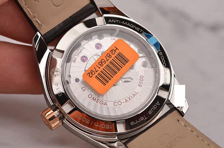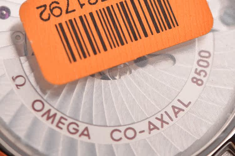 欧米茄自产大名鼎鼎Cal.8500型机芯,同轴自动机械机芯,获瑞士天文台认证。搭载无卡度游丝摆轮和接续排列的双发条盒,双向自动上链系统。夹板和摆铊上饰有独特的阿拉伯风格日内瓦波纹。由202个零件组成,39钻,5方位校正,摆频25200,动力储备约60小时。走时状态极嘉。