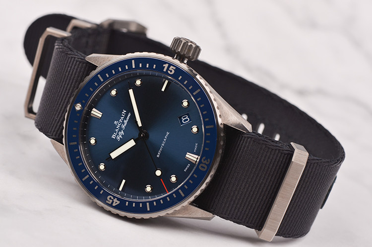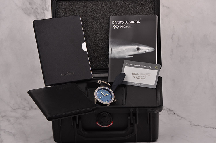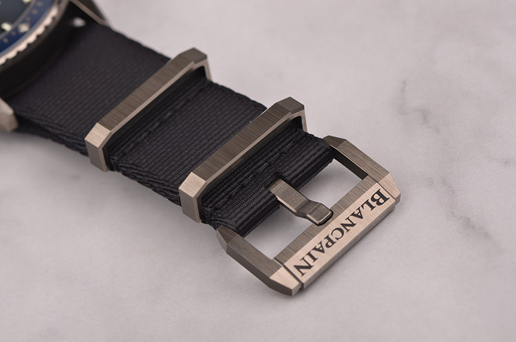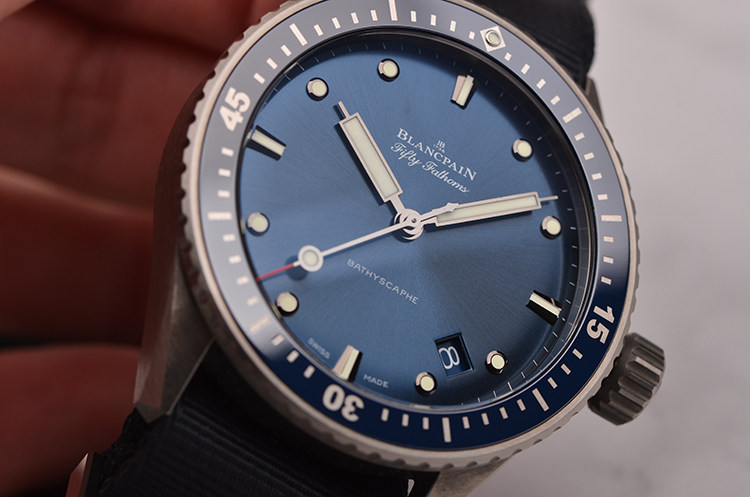 磨砂缎面灰色陶瓷表壳及表扣,原厂黑色NATO表带成色极新。单向旋转磨砂缎面蓝色陶瓷表圈,附Liquidmetal材质刻度。蓝宝石水晶镜面及底盖,立体蓝色表盘,夜光刻度及指针,4至5点位间日历显示功能。旋入式防水表冠。口径43.6MM*13.83MM,防水300M。
