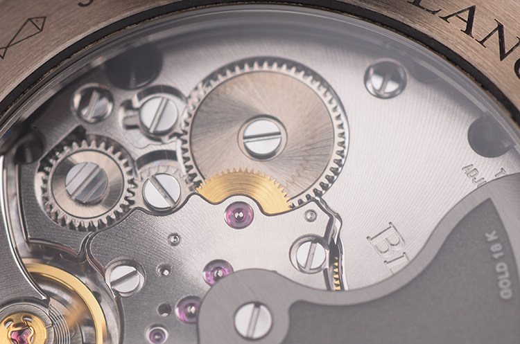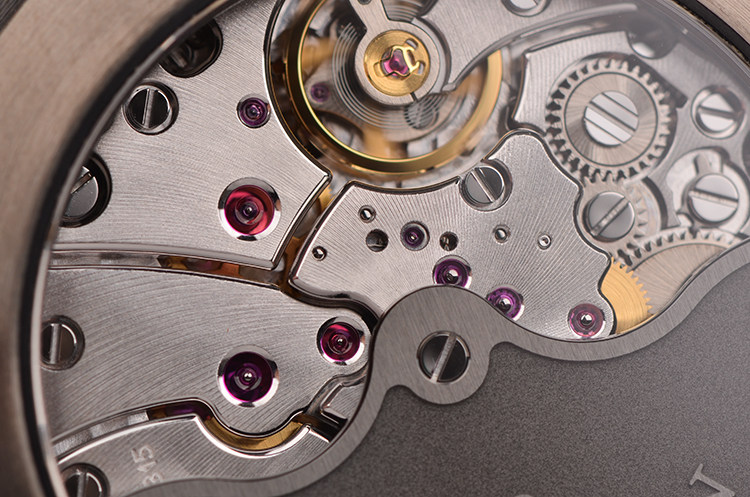 JB自产CAL.1315型机芯,自动机械,极其精致日内瓦条纹打磨,倒角抛光修饰。由227个零件组成,35钻,摆频28800,6方位校正机芯,3发条盒,动力储存约120小时,五天链长动力机芯。18K金自动摆陀,走时状态极嘉。