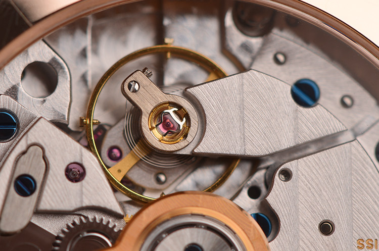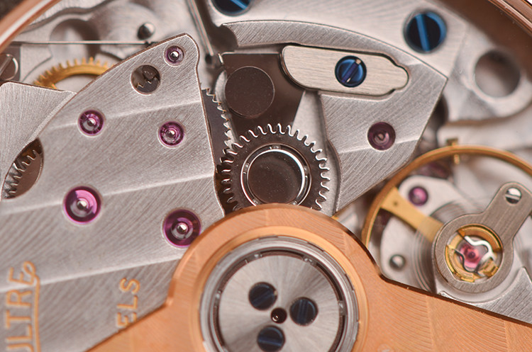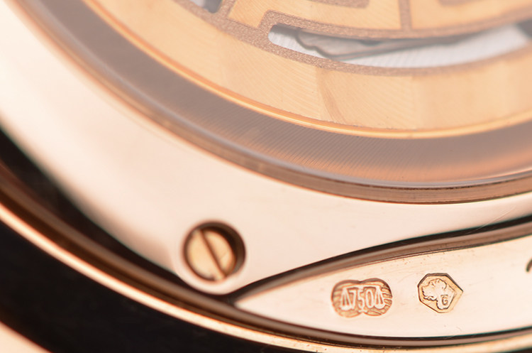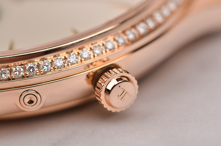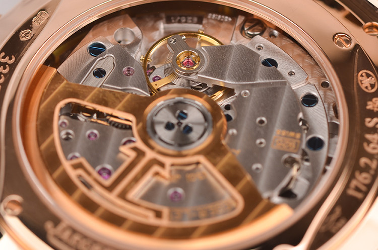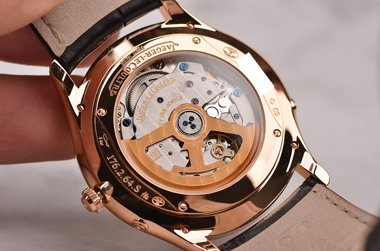 积家自产的CAL.925型机芯,自动机械,由253个零件组成,极其精致日内瓦条纹打磨,30钻,摆频28800,动力储存约43小时,新款玫瑰金镂空自动转陀。走时状态极嘉。