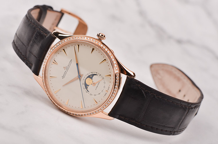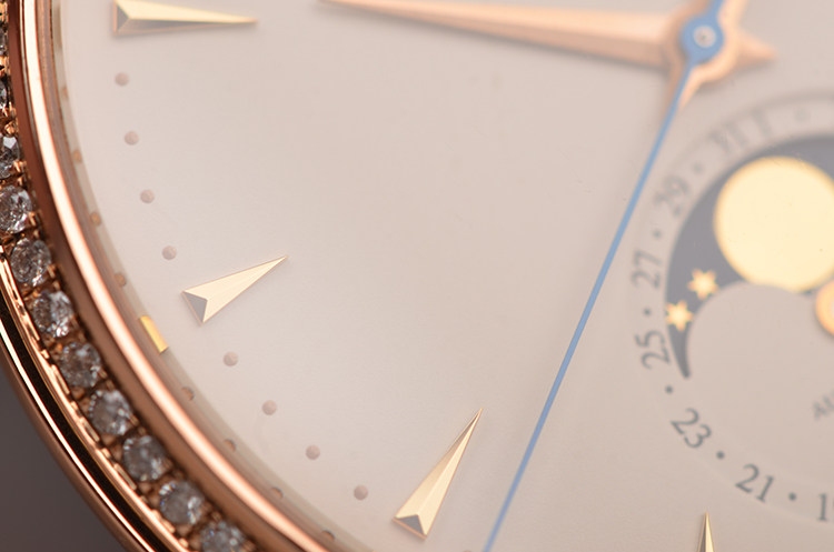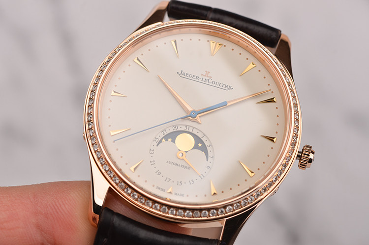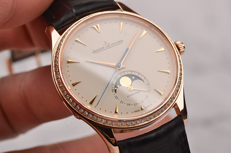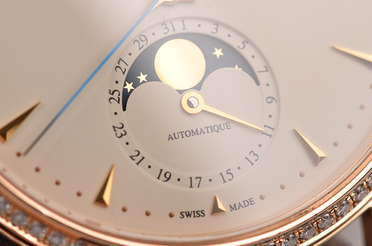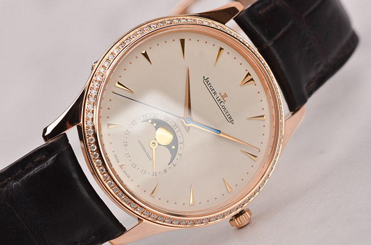 大师系列玫瑰金后镶钻超薄月相日历自动机械男表