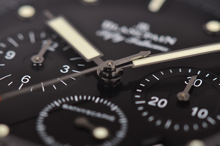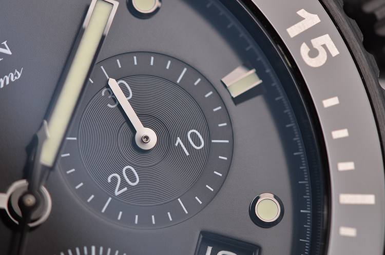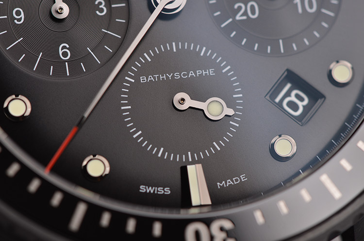 缎面磨砂黑色陶瓷表壳及表扣,全新原装黑色帆布内衬橡胶表带。单向旋转缎面磨砂黑色陶瓷表圈,表圈填充液态金属(Liquidmetal)刻度。蓝宝石水晶镜面及底盖,立体黑色计时表盘,夜光刻度及指针,4至5点位间日历显示功能,9点位12小时计时,6点位独立小秒针,3点位30分钟计时。旋入式防水表冠,口径43.6MM*15.25MM,防水300M。