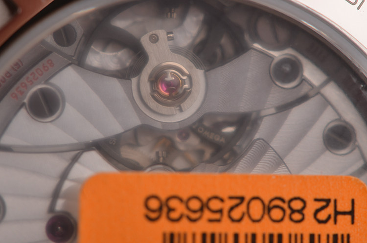 欧米茄自产大名鼎鼎Cal.8500型机芯,同轴自动机械机芯,获瑞士天文台认证。搭载无卡度游丝摆轮和接续排列的双发条盒,双向自动上链系统,Si14硅游丝防磁,夹板和摆铊上饰有独特的阿拉伯风格日内瓦波纹。由202个零件组成,39钻,5方位校正,摆频25200,动力储备约60小时。走时状态极嘉。