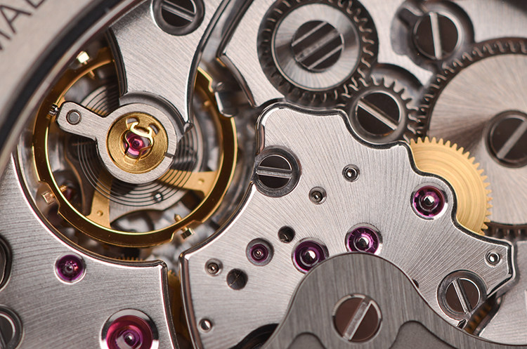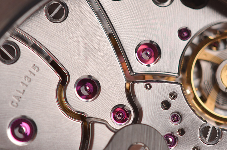 JB自产CAL.1315型机芯,自动机械,极其精致日内瓦条纹打磨,倒角抛光修饰。由227个零件组成,35钻,摆频28800,6方位校正机芯,3发条盒,动力储存约120小时,五天链长动力机芯。18K金自动摆陀,走时状态极嘉。