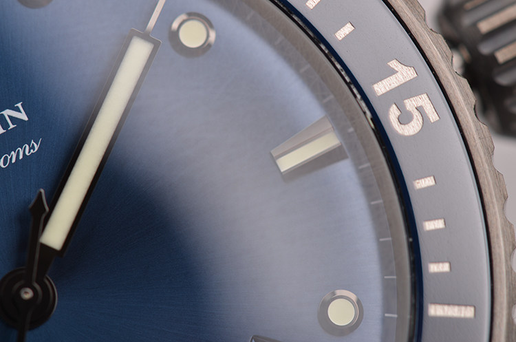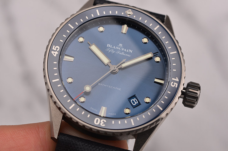 磨砂缎面灰色陶瓷表壳及表扣,原装深蓝色尼龙内衬橡胶表带成色极新。单向旋转磨砂缎面灰色陶瓷内嵌蓝色陶瓷表圈,附Liquidmetal材质刻度。蓝宝石水晶镜面及底盖,立体蓝色拉丝表盘,夜光刻度及指针,4至5点位间日历显示。旋入式防水表冠。口径43MM*13.83MM,防水300M。