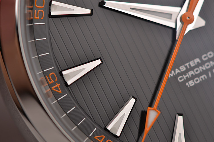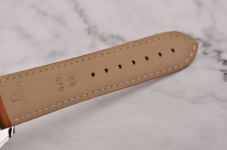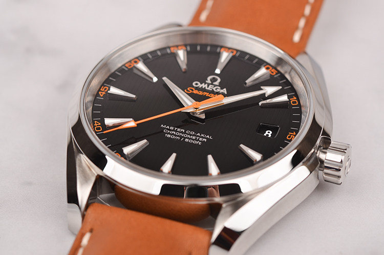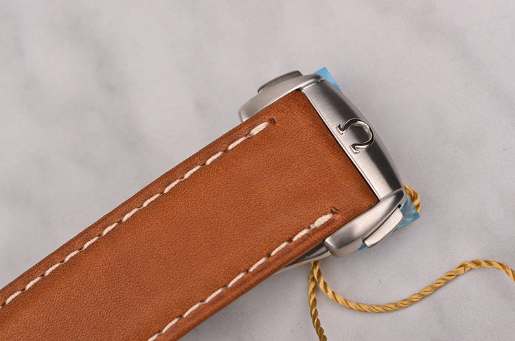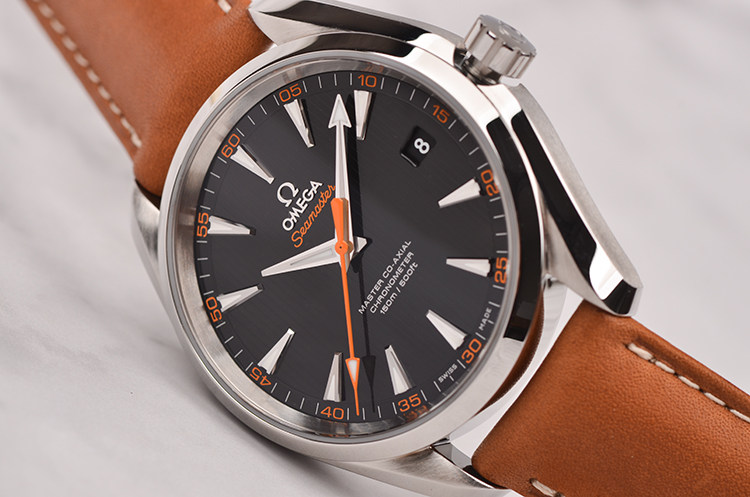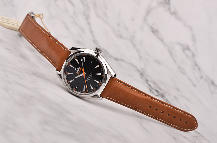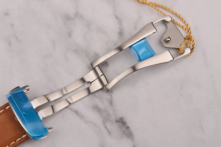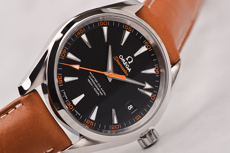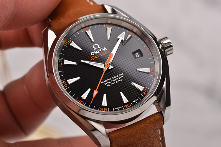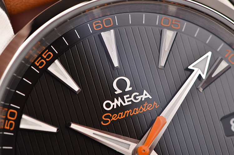 精钢表壳及按压式折叠表扣,全新原装棕色小牛皮表带。蓝宝石水晶镜面及底盖,立体黑色“柚木”条纹表盘,夜光指针及刻度,天文台认证标识,大三针设计,醒目橙色秒针,3点位日历显示窗口。口径41.5MM*13.4MM。旋入式防水表冠,防水150M。