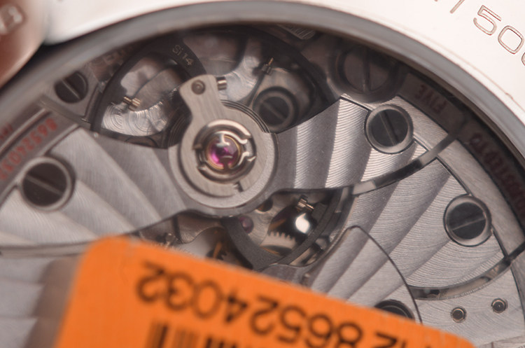 欧米茄自产大名鼎鼎Cal.8500型机芯,同轴自动机械机芯,获瑞士天文台认证。搭载无卡度游丝摆轮和接续排列的双发条盒,双向自动上链系统,Si14硅游丝防磁,夹板和摆铊上饰有独特的阿拉伯风格日内瓦波纹。由202个零件组成,39钻,5方位校正,摆频25200,动力储备约60小时。走时状态极嘉。