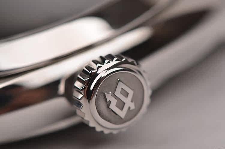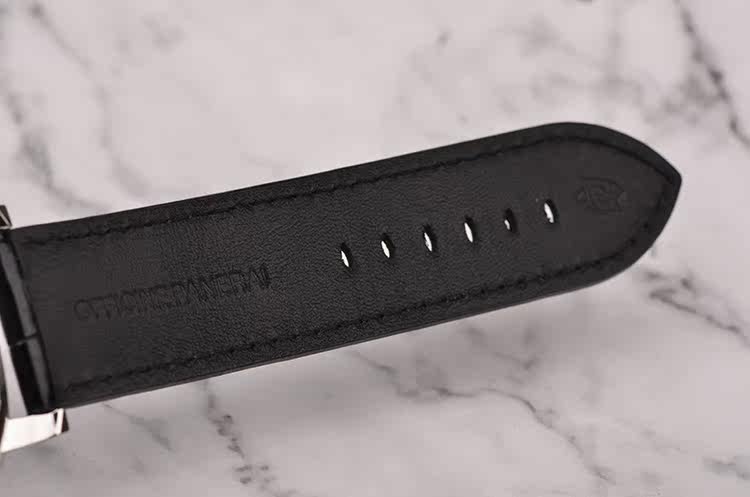 精钢表壳及表扣,后配全新黑色鳄鱼皮表带。蓝宝石水晶镜面及底盖,立体黑色三明治表盘,夜光刻度及指针,9点位独立小秒针,3点位日历窗口。旋入式防水表冠,口径47MM*13.75MM。防水100M。