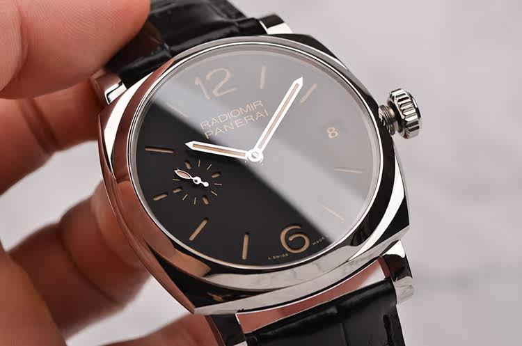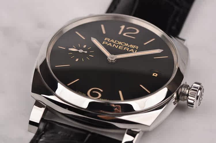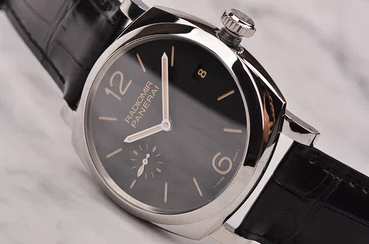 三明治黑盘小三针日历47MM三天动能手上链皮带男表
