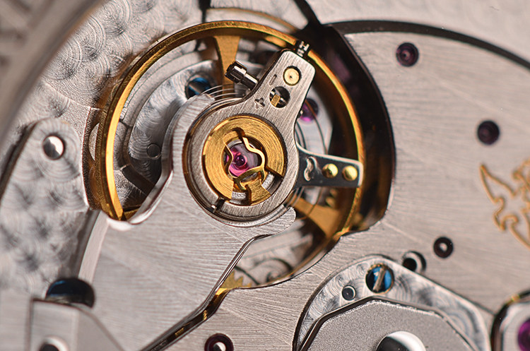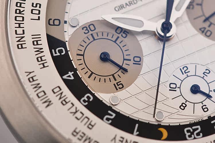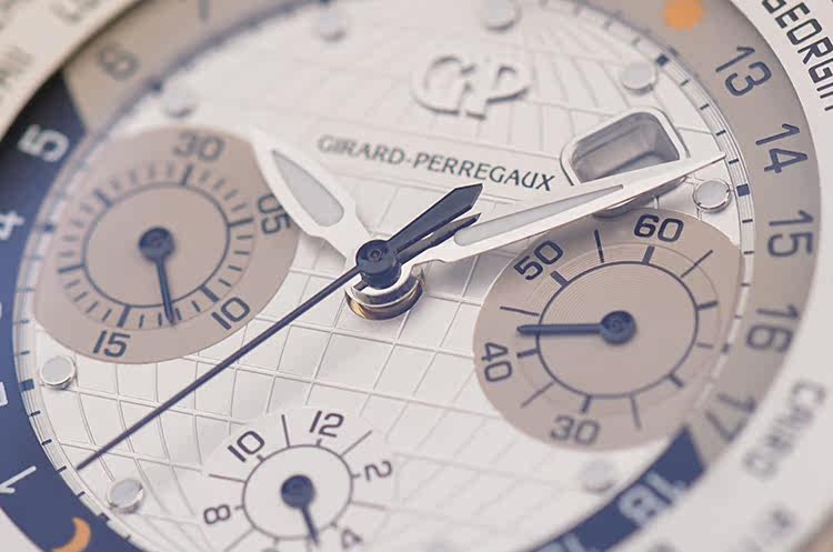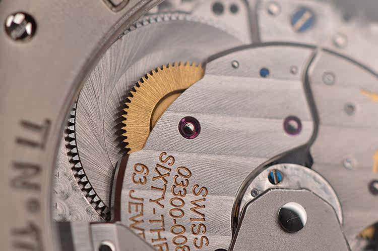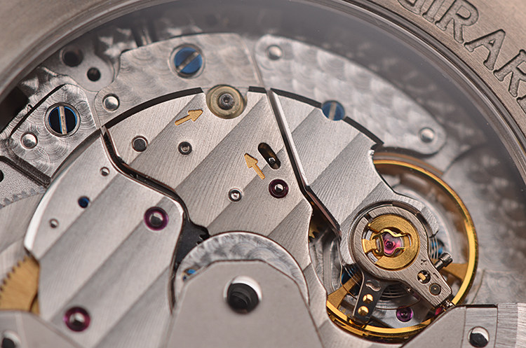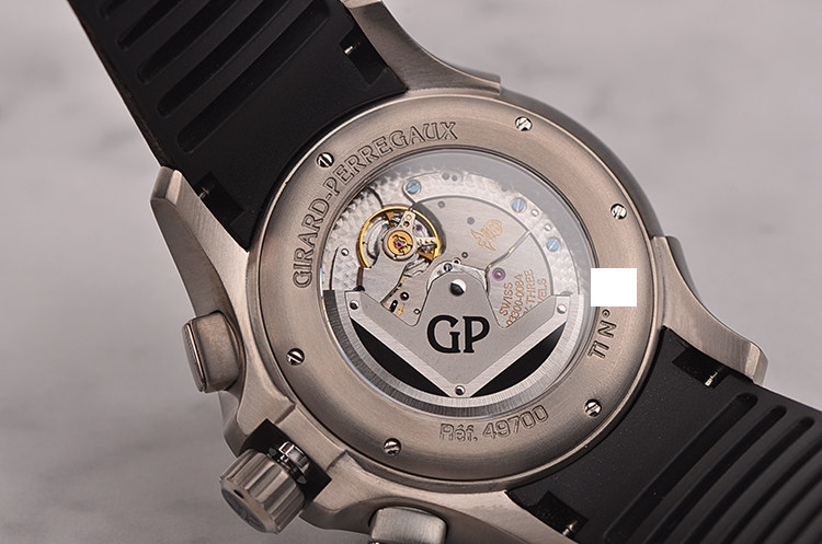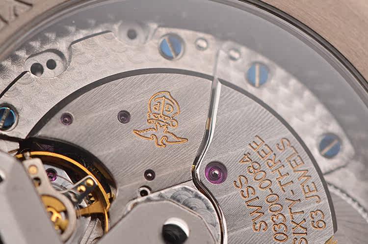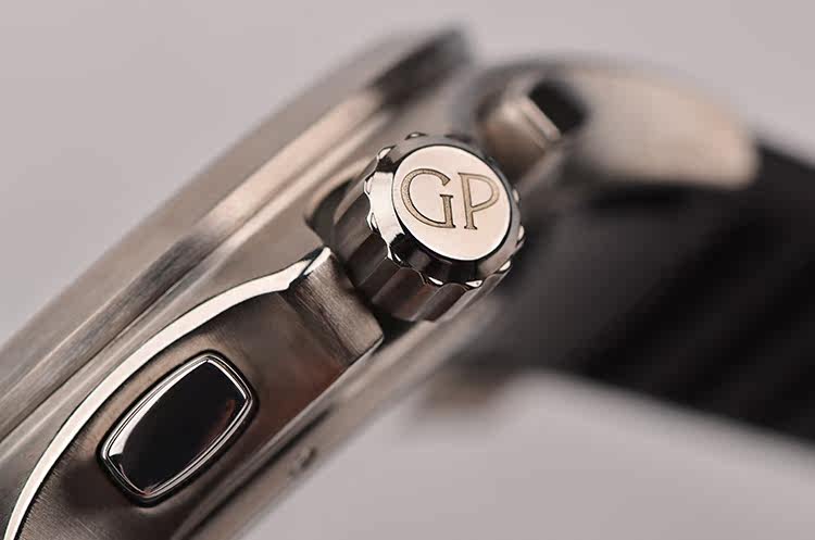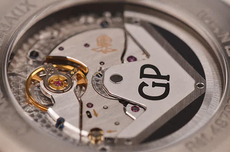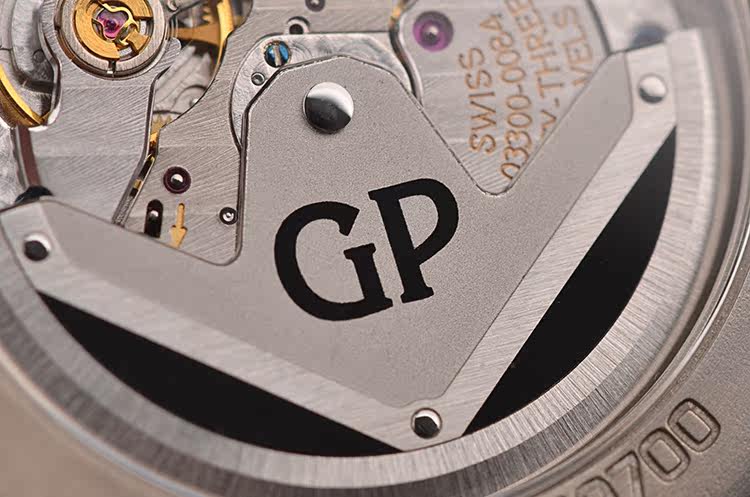 GP自产的CAL.03300-0084型机芯,自动机械,极其精致日内瓦条纹打磨,倒角抛光修饰,高达63钻,摆频28800,动力储备约46小时,走时状态极嘉。