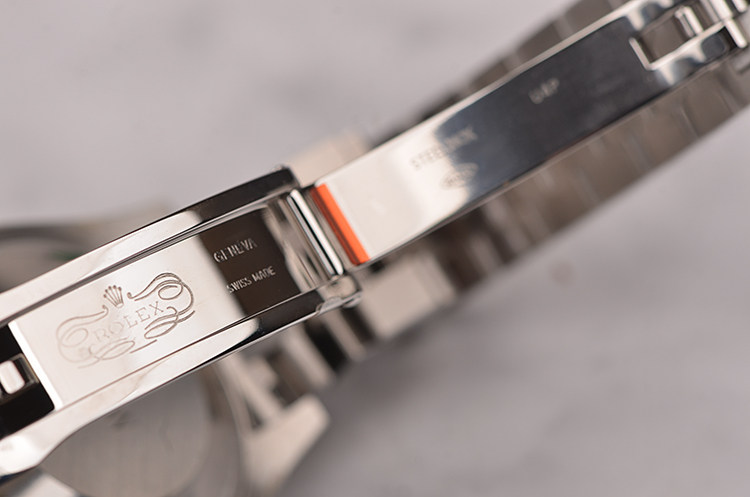 劳力士自产的CAL.2235型机芯,获瑞士天文台认证,自动机械,31钻,摆频28800,蓝色Parachrom游丝,Paraflex避震器,动力储备约50小时。走时状态极嘉。