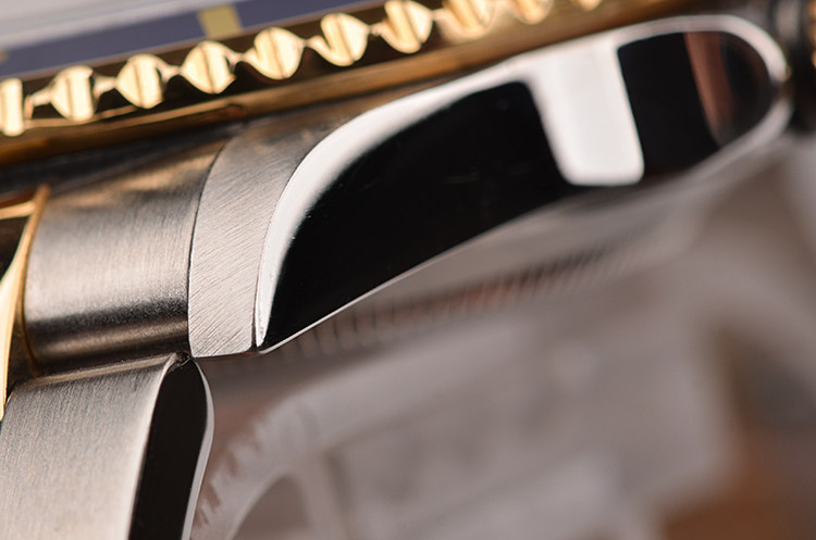 904L精钢及18K黄金表壳及链带,折叠式表扣。蓝色黄金单向可旋转计时表圈。蓝宝石水晶镜面,立体金色表盘,12、6、9三处蓝宝石刻度,其余位置8颗钻石时标,黄金夜光奔驰指针,3点位放大镜日历显示。黄金旋入式防水表冠。口径40MM*13.8MM,防水300M。