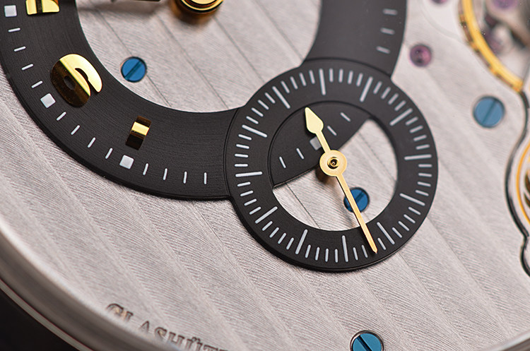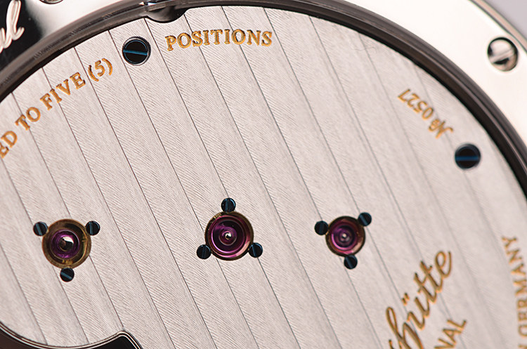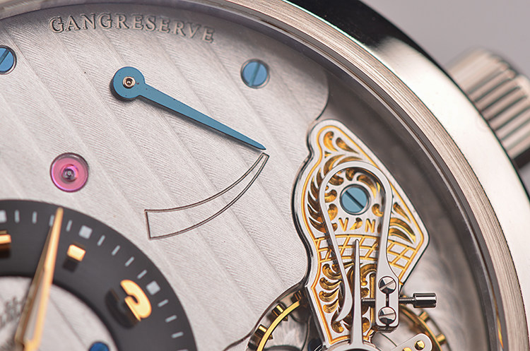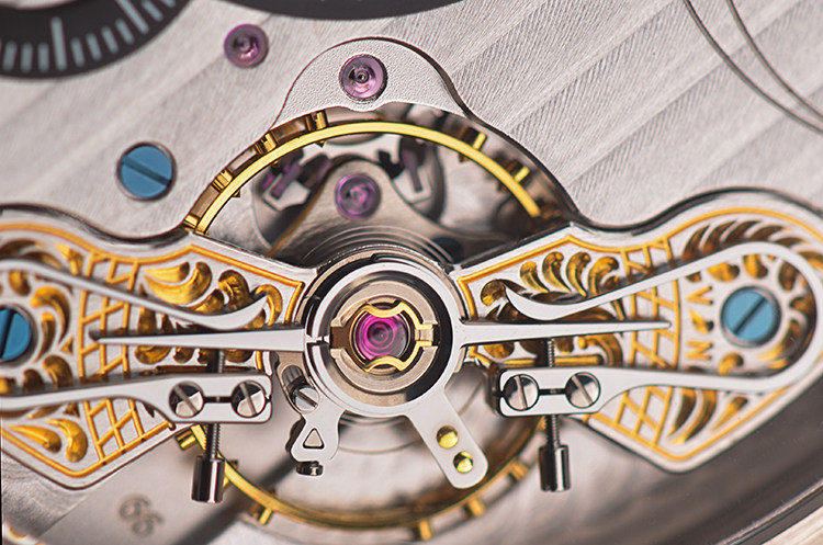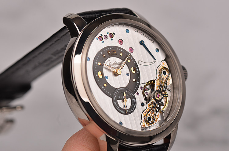 GO自产的CAL.66-01型机芯,手上链,极其精致人手条纹打磨,31钻,摆频28800,5方位校正,黄金套筒固定红宝石轴承,机芯独立签署,动力储存约40小时,走时状态极嘉。