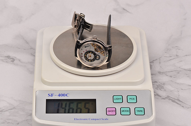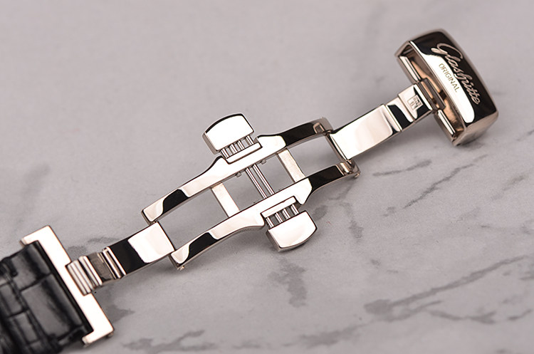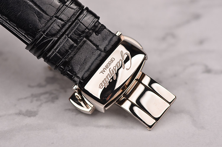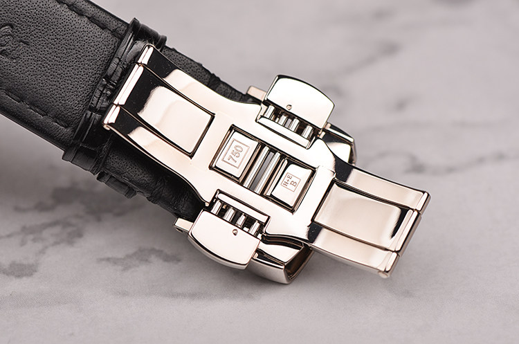 白金鹅颈反做偏心动显手上链折叠扣皮带男表