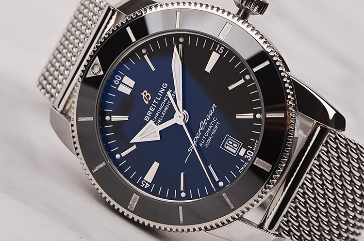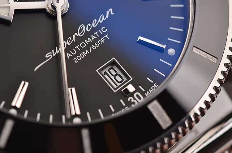 超级海洋文化系列陶瓷圈大三针日历46MM自动机械钢带男表