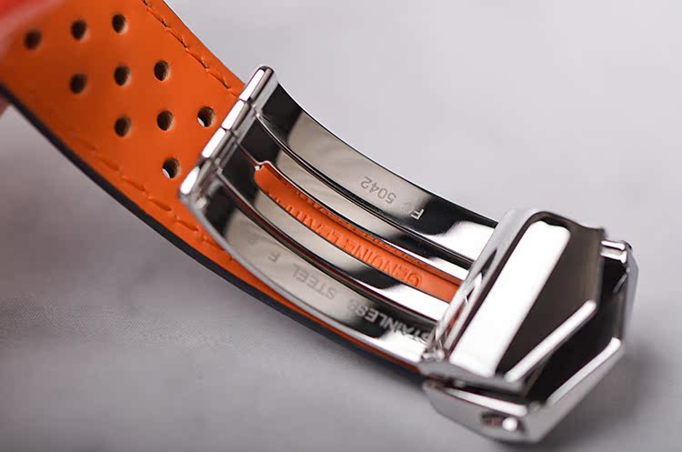 表带:原装深蓝色牛皮内衬橙色橡胶表带